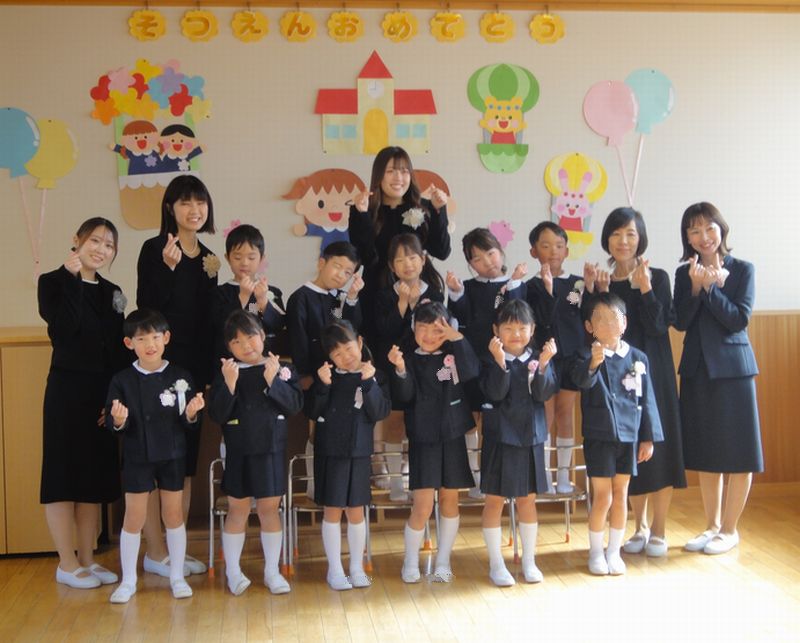 ご卒園おめでとうございます。この日、11名の園児たちが元気に巣立っていきました。困っている友だちに優しく声を掛けたり、頑張っている友だちを応援したりする姿をたくさん見てきました。大きく優しくたくましく成長した子どもたちの晴れ姿はとても輝いて見えました。保護者の皆さま、これまでたくさんのご理解とご協力をいただきましてありがとうございました。卒園実行委員会、役員、年中・年少組の次点役員の皆さまも最後までお世話いただき感謝申し上げます。