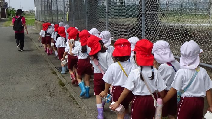 2023年6月27日 6月20日(火)園外保育(田んぼ)に出掛けました。(年長組) 楽しみにしていた田んぼにでかけました。交通のルールを守って 歩くことができました。水の生き物を見たり触れたりして、とても楽しい時間を過ごすことができました。とても楽しかったね★