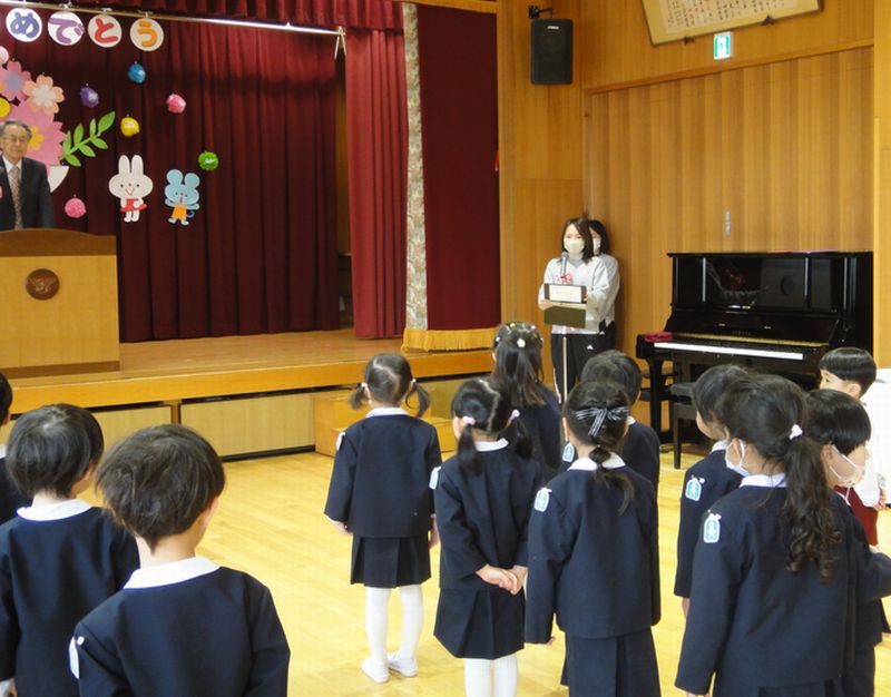 2025年3月21日 令和6年度修了式を行いました。 修了式を行いました。担任の先生に名前を呼んでもらい、園長先生から最後のお話を聞きました。ホールに集まった子どもたちは1年間の活動を終え、心身ともに少し大きくなったように感じられました。また、2名の教職員の退職と異動の紹介がありました。保護者の皆さまには温かいご理解とご協力をいただきましたことを、心より御礼申し上げます。