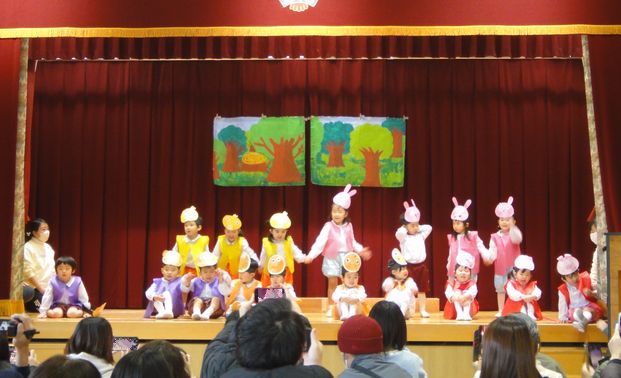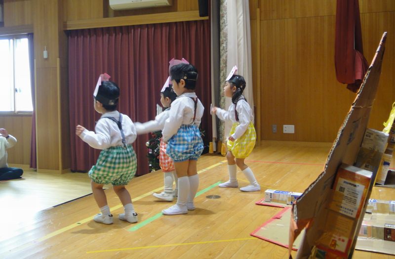 2025年12月15日 12月13日(土)生活発表会をしました。 毎日、稽古に取り組んできた成果を発表する日が来ました。幕が開くとどの子どもも自然に笑顔が溢れていつもより張り切ってできました。どの学年も十分に達成感を味わうことができたと思います。嬉しそうに自分のお面を持ち帰った姿が印象的でした!
